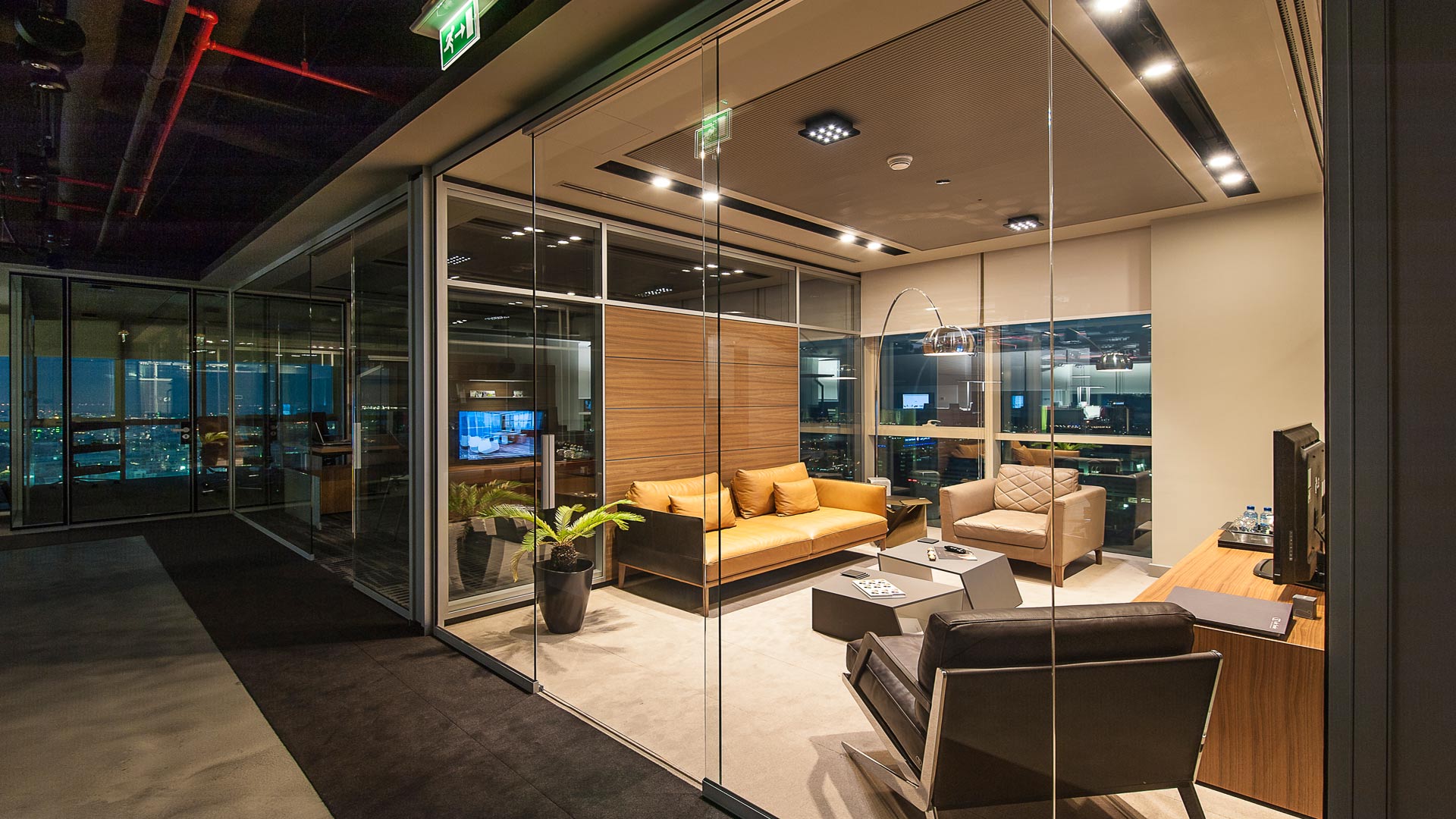 We installed modular ceiling of aesthetic style & acoustical quality. Suitable panels for the insertion of lights, loudspeakers and other accessories were identified by the customer and prepared wherever necessary. A polyester fiber rug or rock wool, placed above the panel, completes the system providing a high sound absorbing value.