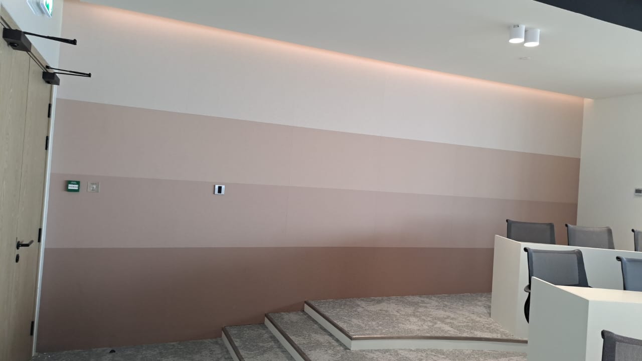 Supply and installation of acoustic polyester felt printed 3D wave panels with a thickness of 12mm.