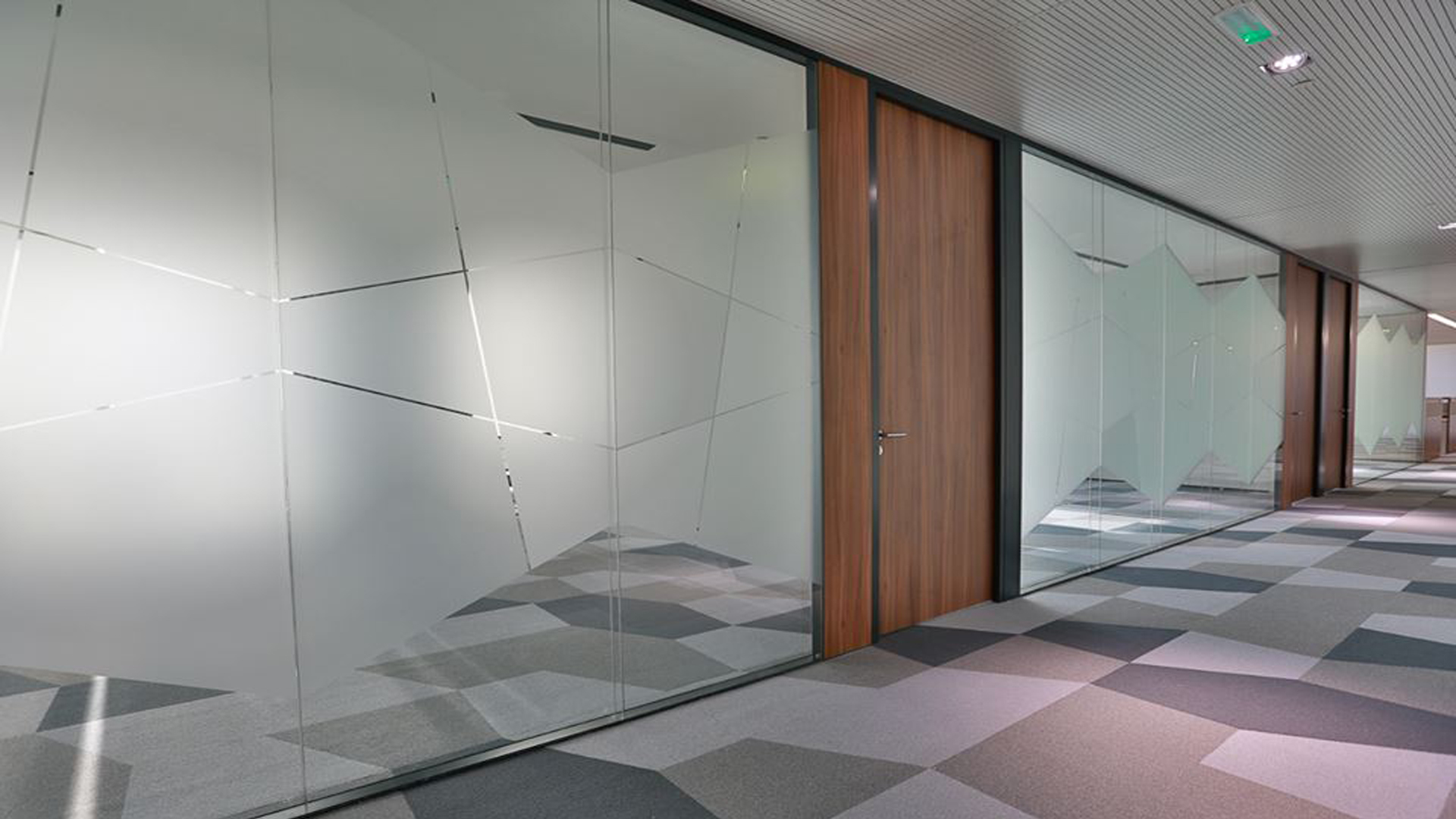 Size: 1500 sqm of metal partition; 1200 sqm of double glass partition