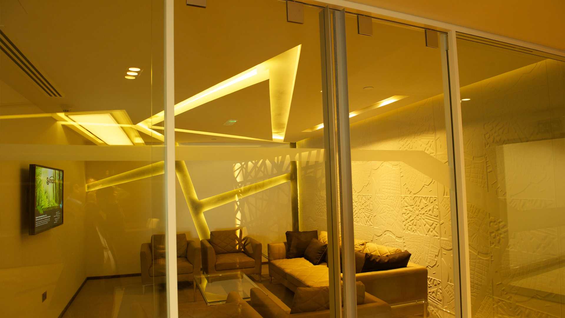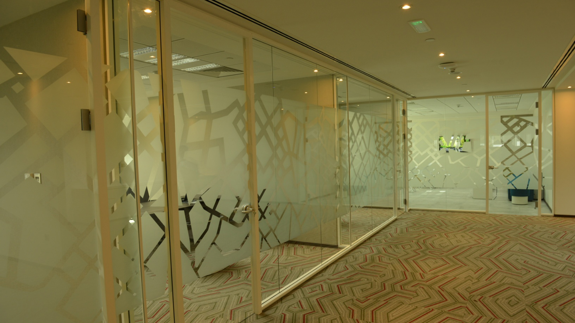 Size: 425 sqm of single glass partitions; 150 sqm of double glass partitions