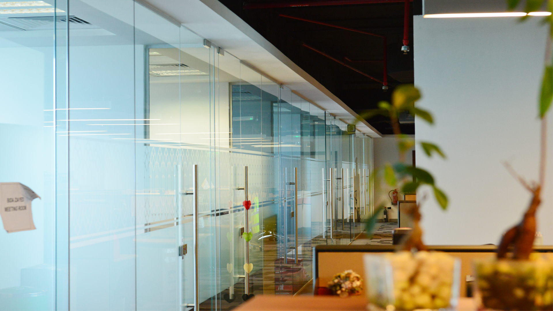 Size: 1600 sqm of single glass partitions; 215 pieces of glass doors